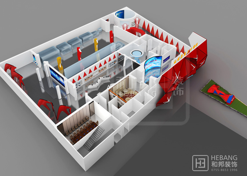 | 設(shè)計(jì)說(shuō)明 | 格力集團(tuán)展廳主體顏色為“中國(guó)紅”,整個(gè)設(shè)計(jì)現(xiàn)代感十足。不管是門(mén)頭設(shè)計(jì)采用的立體設(shè)計(jì)還是內(nèi)部的各種裝飾元素?zé)o不富有設(shè)計(jì)感。之外,整個(gè)展廳的科技感也是十分強(qiáng)的。 | ||||